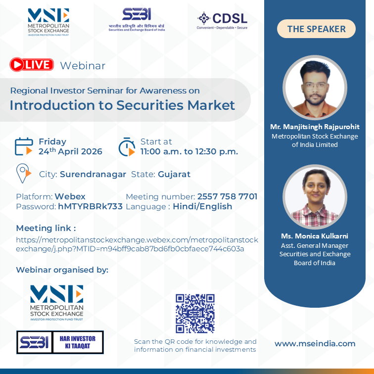 | Dec 23, 2025 | 14:00:00 | Introduction to Securities Market (Beginners) | West Bengal | Purba Medinipur | PHYSICAL |